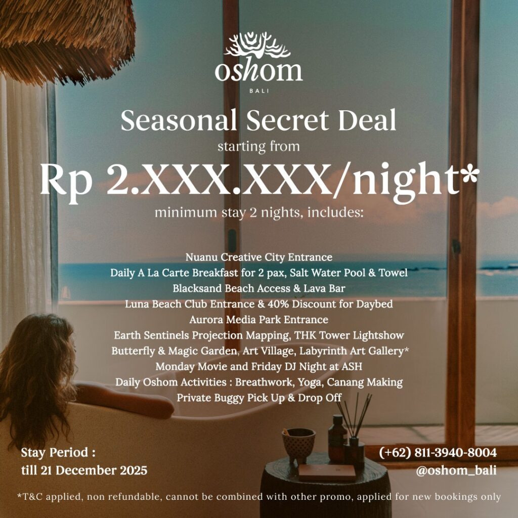 Share your thoughts and inspirational stays at Oshom Bali on social media using #OshomBali #JourneyToOshom